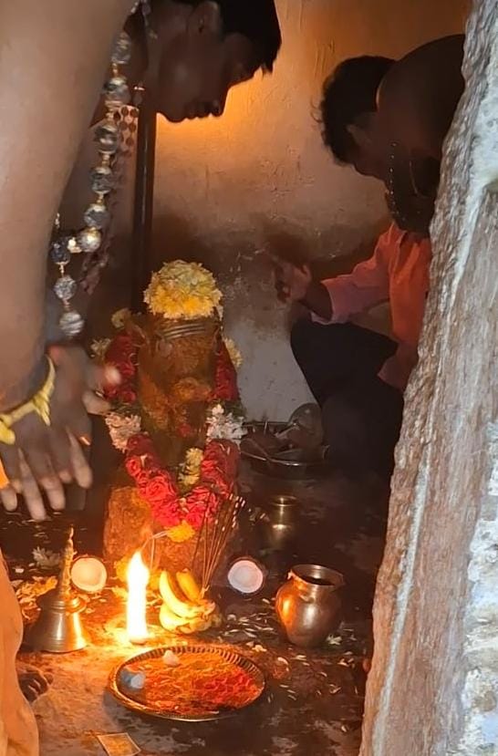 Lord Hanuman in Kangundi Shivling. After a few days of this announcement in November 2025, Kangundi’s first tourist guide trained by TadEkam- Mohan Babu – saw Lord Hanuman in the Western Face (Basava Face) of the Kangundi Shivling. This sent a wave of excitement in the village, as never before had anyone observed this. The result- people of Kangundi are now more aware of their Living Shivling and the link between energies of Lord Shiva and Lord Hanuman (Hanuman Ji is a Rudra avatar of Lord Shiva- born to assist Lord Rama; Shiva willed himself to be born as Hanuman through Vayu (Wind God) and Anjana to fulfill a divine purpose, making Hanuman a manifestation of Shiva’s power and devotion. For more information read https://nkbmeditation.org/blog/hanuman-as-an-avatar-of-Shiva)